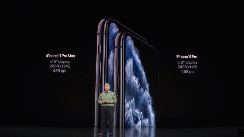 其间,iPhone 11 Pro Max 屏幕尺度 6.5 英寸,iPhone 11 Pro 屏幕尺度 5.8 英寸,均选用 Super Retina XDR OLED 显现屏,具有 200 万 : 1 的对比度,1200nits 的亮度,节能 15%。