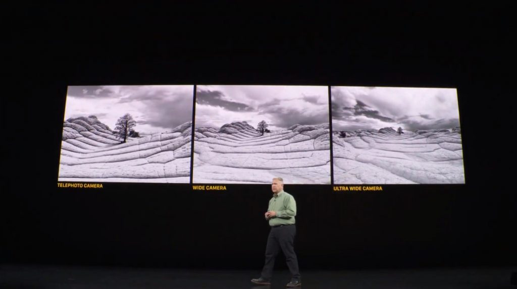 看来拍照才能是这一代 iPhone 的要点,苹果还特别找来 FiLMic 的朋友上台介绍用 iPhone 拍照编排视频,他向咱们进一步介绍了一些镜头的运作,单个镜头能够独立拍照,一点就在广角和超广角之间切换,一起支撑同屏多镜头取景录制。FiLMic 的 app 也将独家登陆 iOS 渠道。